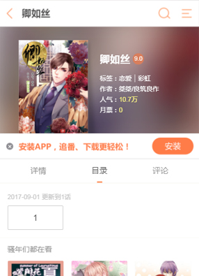 简介: 漫画《卿如丝》讲诉了民国时期,两大商务巨头彼此明争暗斗,高低不下,但是这件事情转机就被刚刚留洋回国的‘傻白甜’少年给打破了。各种的商场厮杀都被宠萌小白一一打破,“且看高冷腹黑大少爷将隔壁傻儿子骗回家。”