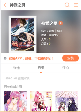简介: 漫画《神武之灵》简述:太初界是人们死之后灵魂归属之处,地形复杂,城池众多,分别由历史上知名的帝王或将帅所统治。无数古往今来的帝王将相,他们拥有着非凡的神武而统治这片世界。秦羲前世是千年前欧冶子的徒弟,以身炼剑。现实中生活小村庄,应天之召来到太初界,继承太阿剑之神武,踏上宿命之路。在抗争中成长和变化,最终成为太初界的强者。