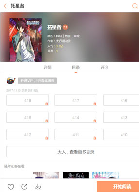 简介:《拓星者》漫画简述:明明上一秒还在赌场被警察给抓住,下一秒就从一个莫名其妙的地方醒来,说是要送去一个星球,进行开拓星球的任务!一个突然出现在屏幕上的告诉他,他们已经被抛入太空封存了几十年,而且,如果他们不服从安排的任务,等待他们的就是永远留在太空,再也没有回去的机会。为了能够平安回到地球,一行人只能开始了对外星球的探索!
